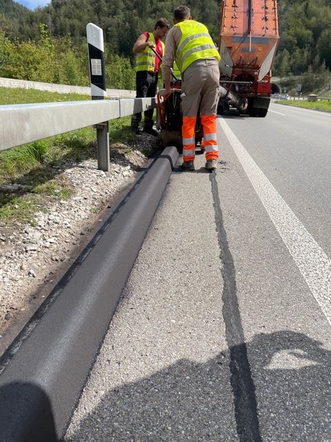 Machine pour exécution d’une bordure en enrobé avec 2 types de coffrage
